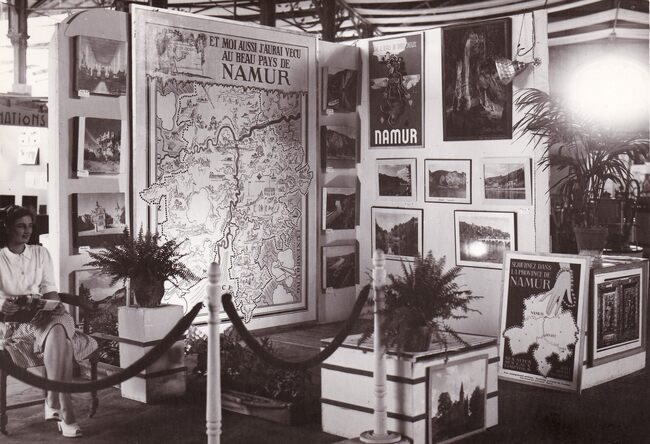 Formaat : 13 x 18 cm. - Stand van de provincie Namen op de handelsbeurs in de Albert hall van het oud station op het Ernest Feysplein.