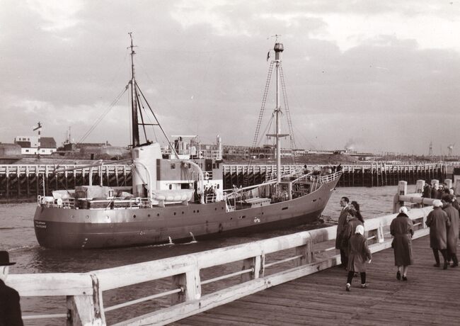 Formaat : 13 x 18 cm. - 11 maart 1955, de O.94 Esperance is vastgelopen in de havengeul bij het Weststaketsel.