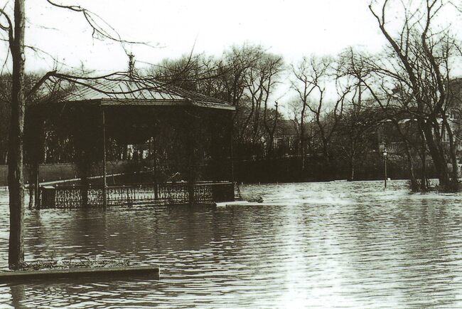 Tropic T 427. - Ostende oender woater 1953. - Leopoldpark en kiosk. - Inventaris 2020/1291 fotoarchief D2 album 3. Herkomst Simoens.