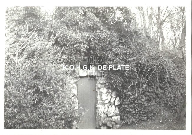 Formaat : 13,5 x 10 cm. - Het gebouw van de duivenschieting en de paardenstallen ligt in het midden van het terrein.