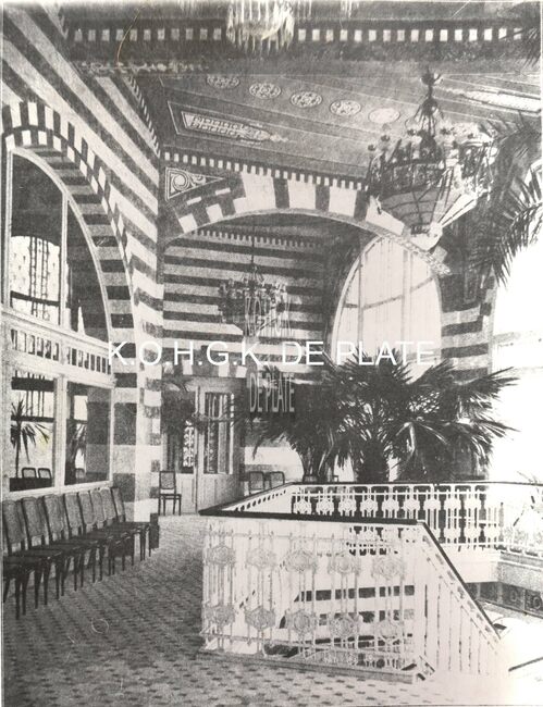 Formaat : 33 x 23 cm. - Ostende - Le Kursaal. - We zien een deel van de zuid- en westgevel van het derde Kursaal. Links duwen mannen een vracht stoelen met een kar de Kursaal-Westhelling naar boven. Vooraan, de…