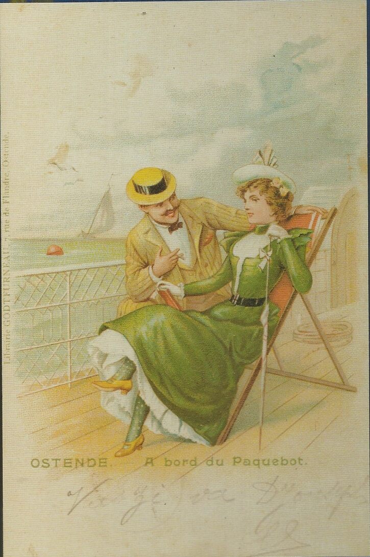 Aan boord van de pakketboot. De verleiding : "Zien we elkaar te Oostende" of komen we volgend jaar terug" (1901) (Omer Vilain)