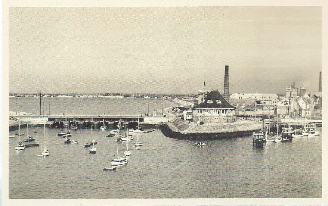 Een luchtfoto van een deel van de achterhaven. In het midden ziet men het Clubhuis van de RYCO. Links ziet men de grote Spuikom, die in deze functie nooit kon gebruikt worden. (Omer Vilain)
