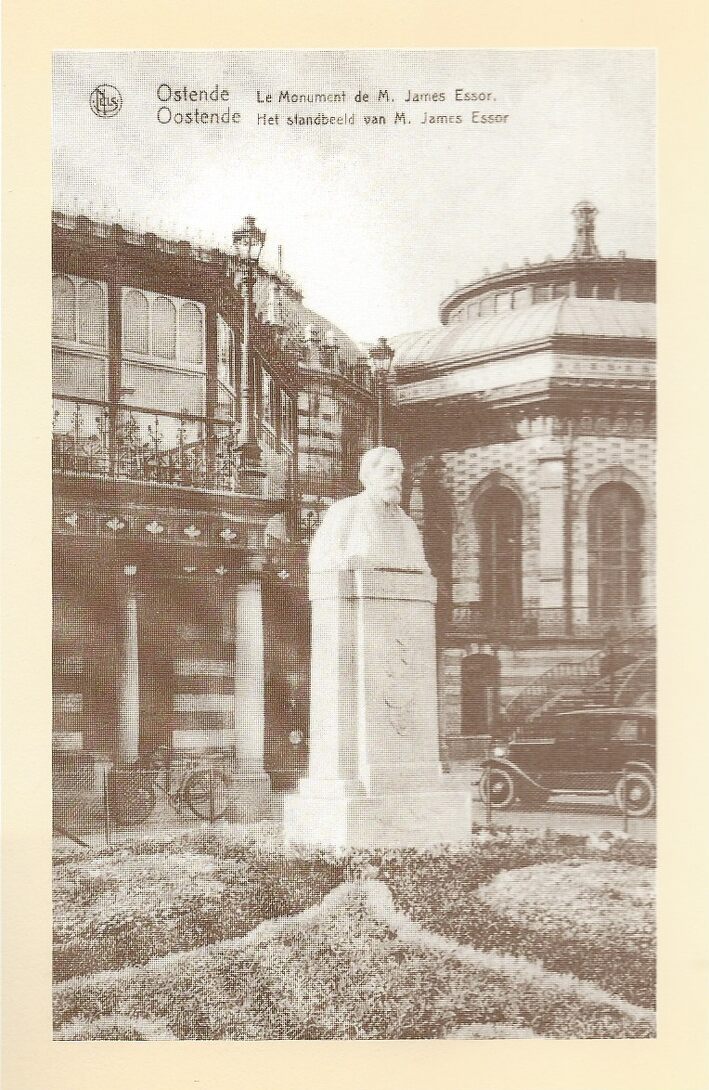 Het borstbeeld van de grote kunstschilder James Ensor (1860-1949). Het is van de hand van de beeldhouwer Edmond de Valériola. Het werd in 1930 in het parkje van het Kursaal onthuld. Bij de afbraak van het Kursaal werd het gered en kreeg na de oorlog een plaats in het Leopoldpark (Omer Vilain)