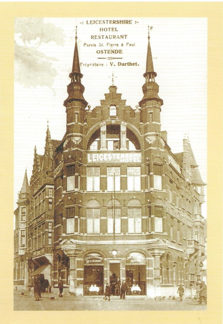 Het Leicestershire Hotel met twee sierlijke torentjes. (Hoek Kaaistraat en St. Petrus en Paulusplein (Omer Vilain)