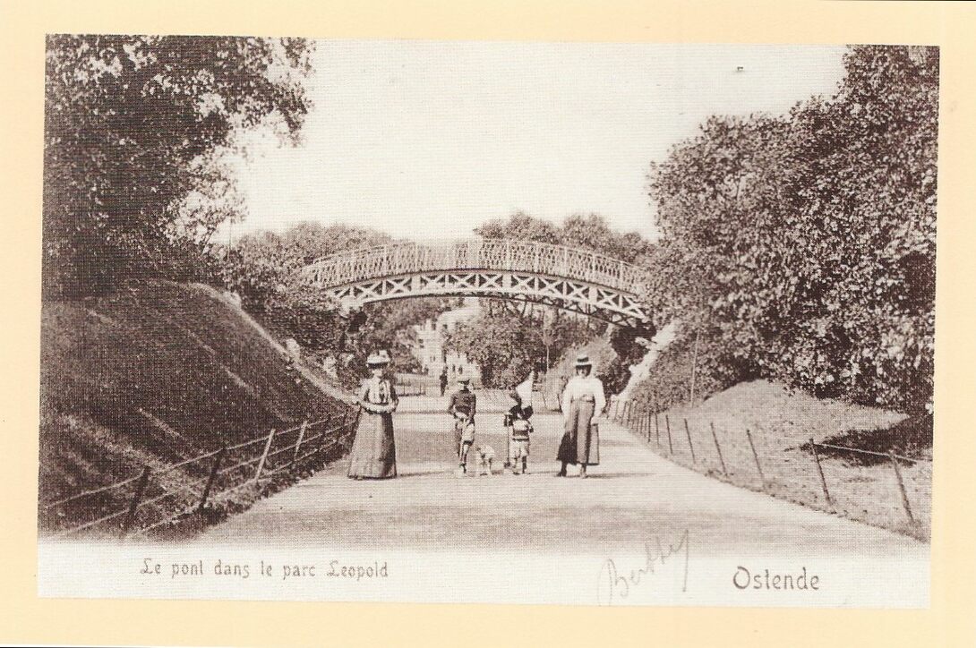 Het luchtbrugje dat de verbinding tussen de Trinhall en de fontein mogelijk maakte. Afgebroken rond 1960 (Kaart van rond 1900) (Omer Vilain)