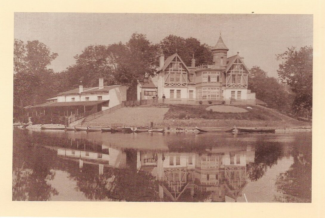 Een mooi romantisch zichtje van het Laiterietje met alle bijgebouwen, zeer mooi weerspiegeld in het water. Zo mooi dat men de foto ondersteboven kan bekijken (circa 1920) (Omer Vilain)