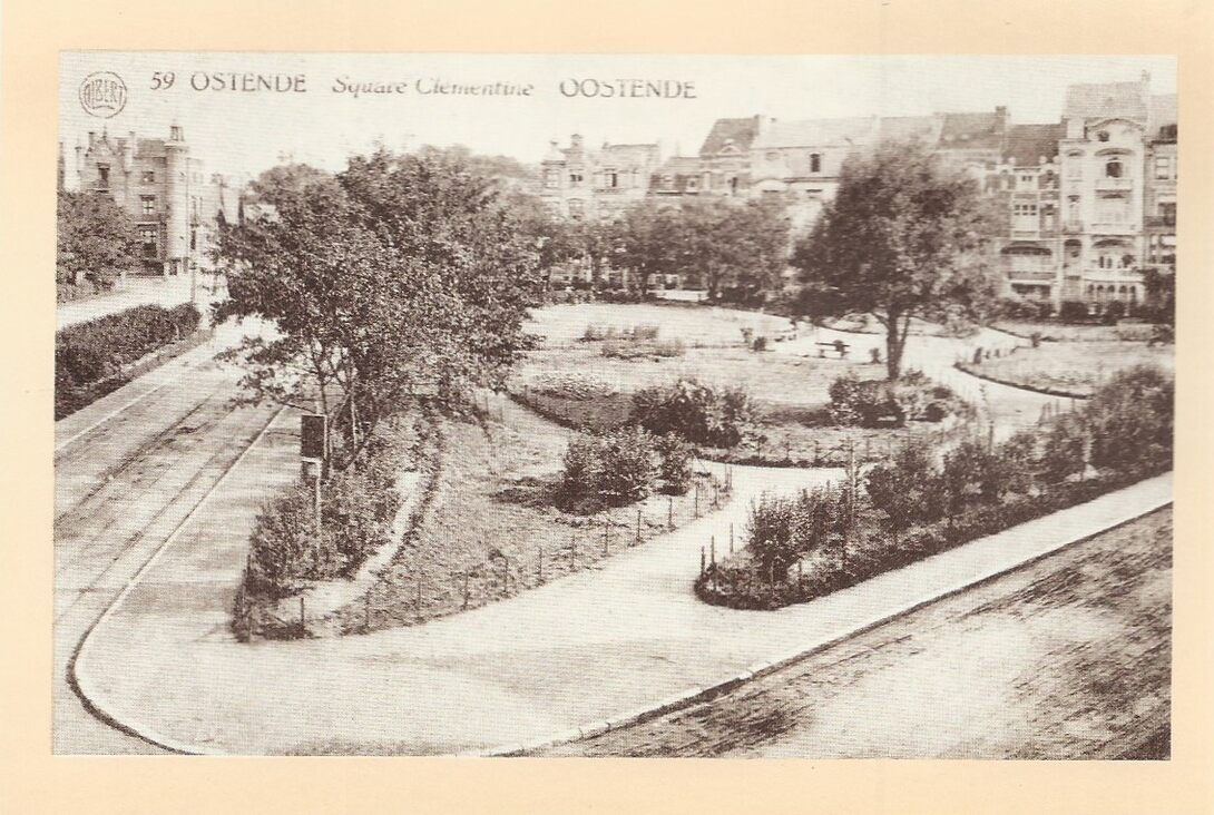 Het Prinses Clementinaplein voor de Eerste Wereldoorlog. Prachtige herenhuizen sierden de omgeving van dit plein. Men ziet langs de Koninginnelaan de tramsporen die een tijdje de verbinding deden naar het Bosje (circa 1910) (Omer Vilain)