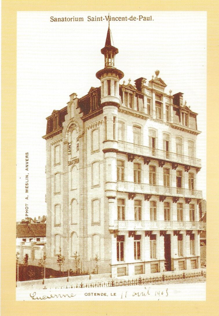 Het kleine uitkijktorentje van het sanatorium Sint-Vincentius in de Sportstraat. Dit gebouw werd reeds vóór 1910 afgebroken. (Omer Vilain)