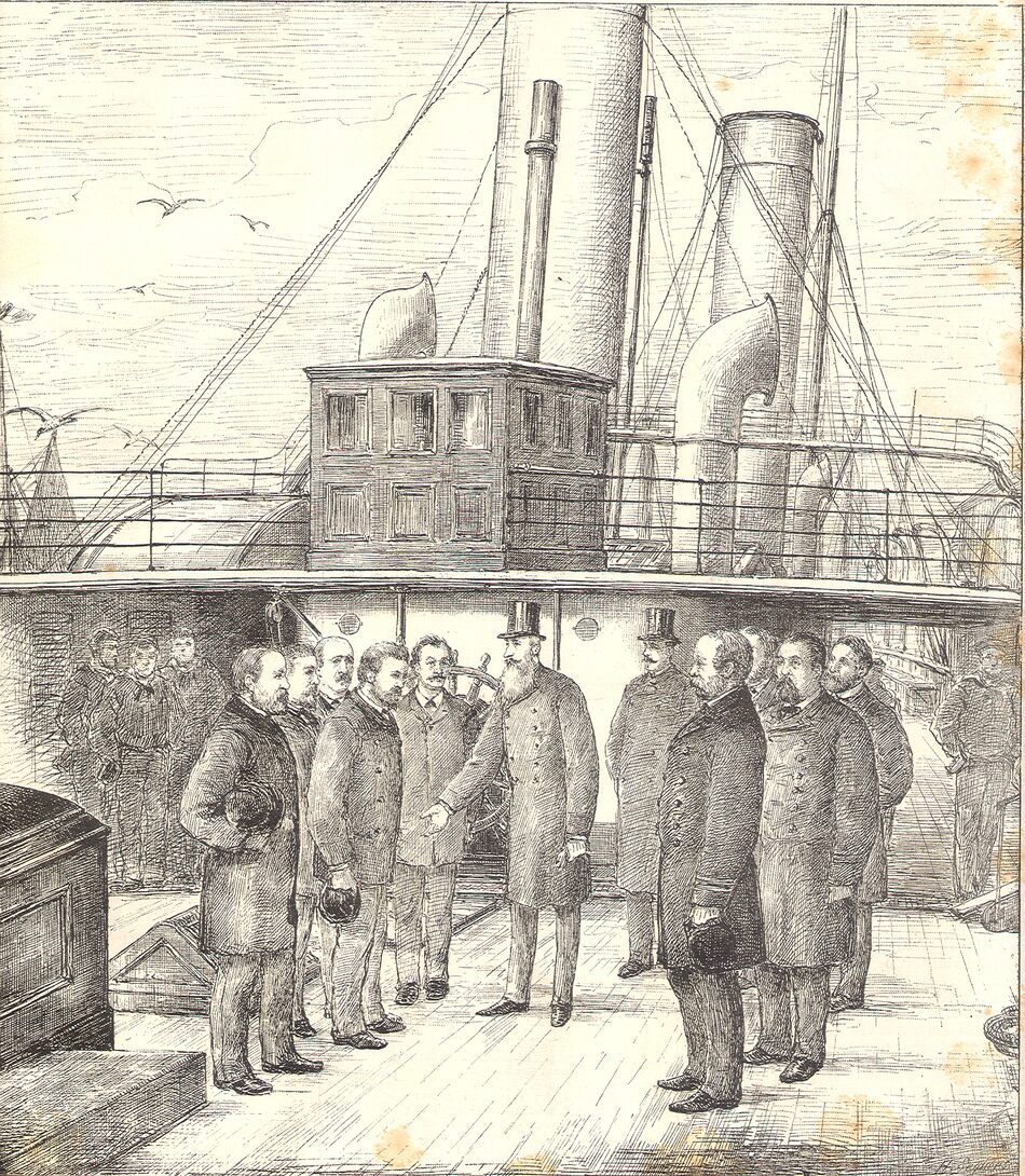 Inauguration de la nouvelle malle de l'état belge, "La Flandre", par S.M. Léopold II, à Ostende