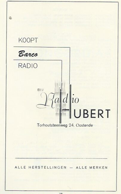 Advertentie : Radio Hubert. Torhoutsesteenweg 24, Oostende