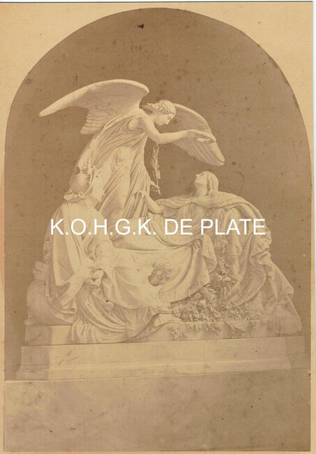 Foto op karton. - Formaat : 27 x 20 cm. - Het neogotische praalgraf werd vervaardigd in wit Carraramarmer door beeldhouwer Charles August Fraikin. Het monument bevind zich in een zeshoekige kapel versierd met gotische…