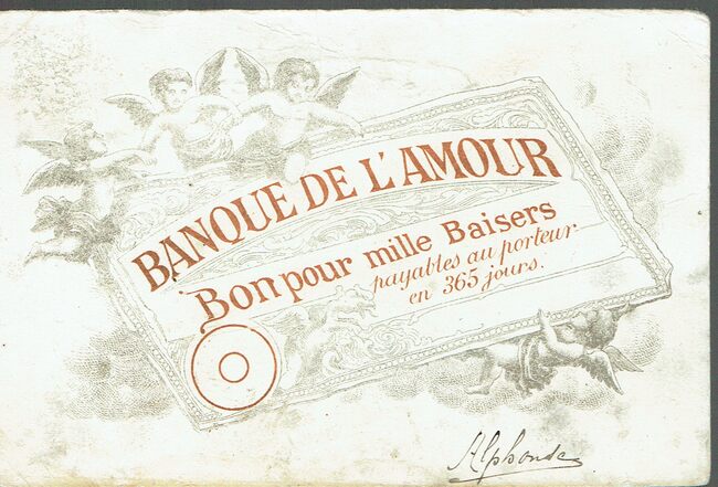 Banque de l'amour Bon pour mille Baisers payables au porteur en 365 jours.