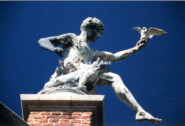 Foto : Wellingtonrenbaan. Sculptuur op duivenschieting