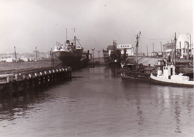 Formaat : 18 x 13 cm. - Slipway. In 1931 worden ten noorden van het visserijdok twee slipways geïnstalleerd. De slipways zijn van Amerikaanse oosprong : "Crandall Dry Dock Engineers Inc., Cambridge Massachusetts, USA…