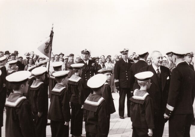 Vaderlandse plechtigheid op het Zeeheldenplein.Minister Albert DEVEZE van defensie houdt een toespraak.Centraal TIMMERMANS en ROBYNS.Rechts directeur Rene DAVID die aanwezig is met de Ibisjongens.
