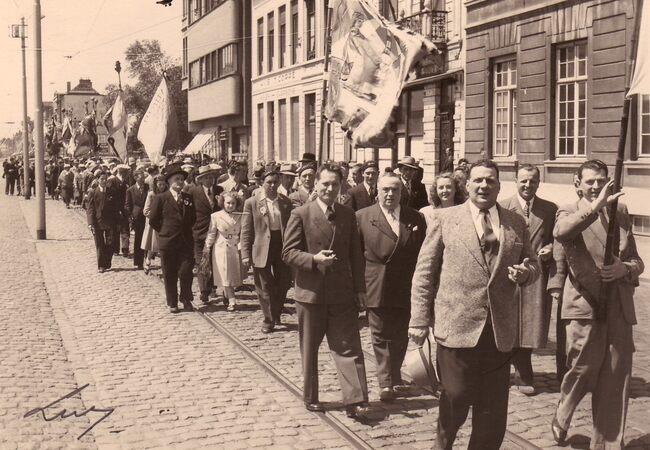 Foto : Voetbalclub SKVO in stoet op de Vindictivelaan