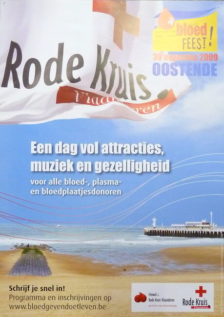 Affiche : Rode Kruis Vlaanderen. Bloed feest !. Oostende. 30/08/2009