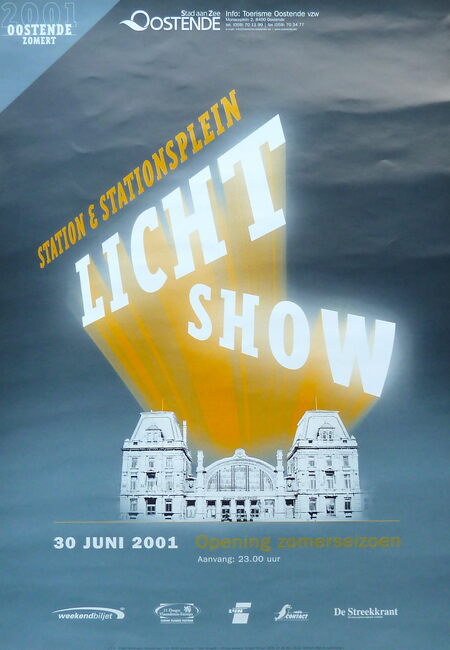 Affiche : Lichtshow. Opening zomerseizoen. Station en Stationsplein. 30/06/2001