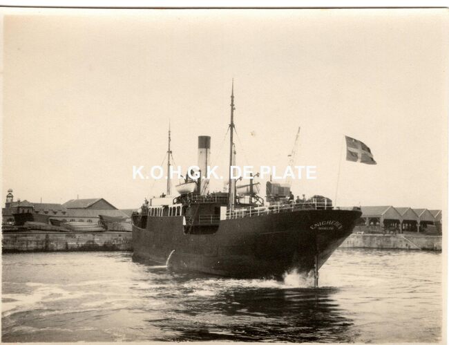 Formaat : 8 x 10,5 cm. - Het vrachtschip "Enigheden" uit Marstal (Denemarken) in het Houtdok. Op de achtergrond, houthandel Snauwaert