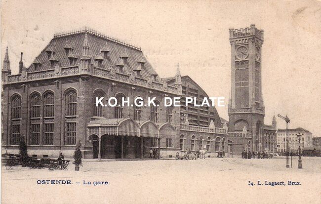 L. Lagaert, Brux., N° 34. - Ostende - La gare. - Spoorwegstation gelegen op de wijk Hazegras langs de Vandersweepplaats.