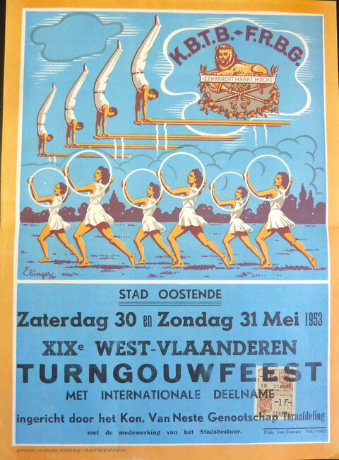 Affiche : Stad Oostende. XIXe West-Vlaanderen Turngouwfeest. 30-31/05/1953