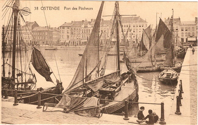 Formaat : 9 x 14 cm. - Albert, N° 38. - Ostende - Port des Pêcheurs. - Vissersvaartuigen gemeerd in het Schuildok. Op de achtergrond, de Visserskaai.