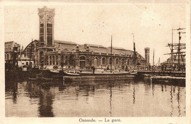 POSTKAARTENSTATION OOSTENDE-STAD (1882-1956)SPOORWEGEN ; STATIONSEERSTE HANDELSDOKHANDELSDOKKEN