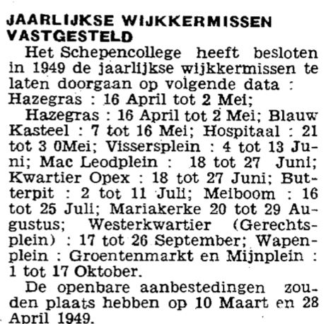 Jaarlijkse wijkkermissen vastgesteld