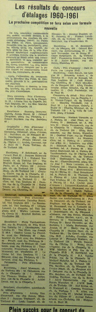 Les résultats du concours d'étalages 1960 - 1961