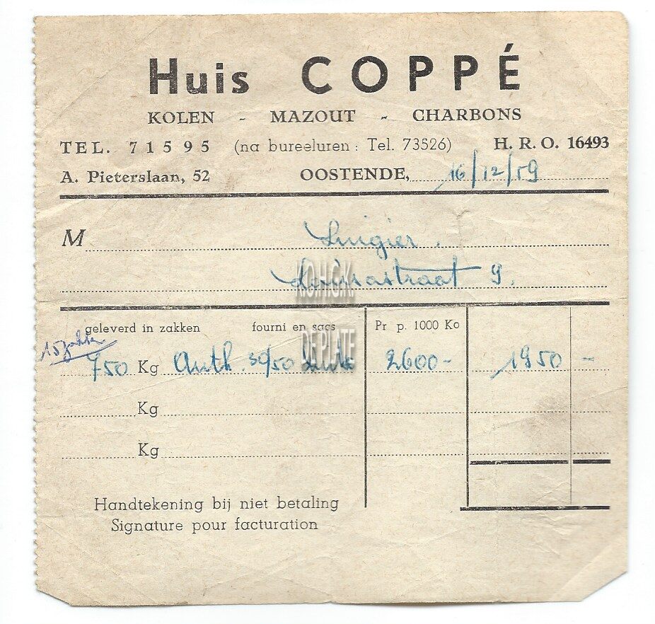 Trefwoorden HANDEL ; LEVERINGSBONNEN COPPE M. (KOLENHANDEL) HANDEL ; KOLEN EN ANDERE BRANDSTOFFEN ALFONS PIETERSLAAN Plaatskenmerk ARCHIEF 110 ARCHIEFDOOS HANDEL Inventarisnummers 2022/2327 16/ 12/ 1959 Print