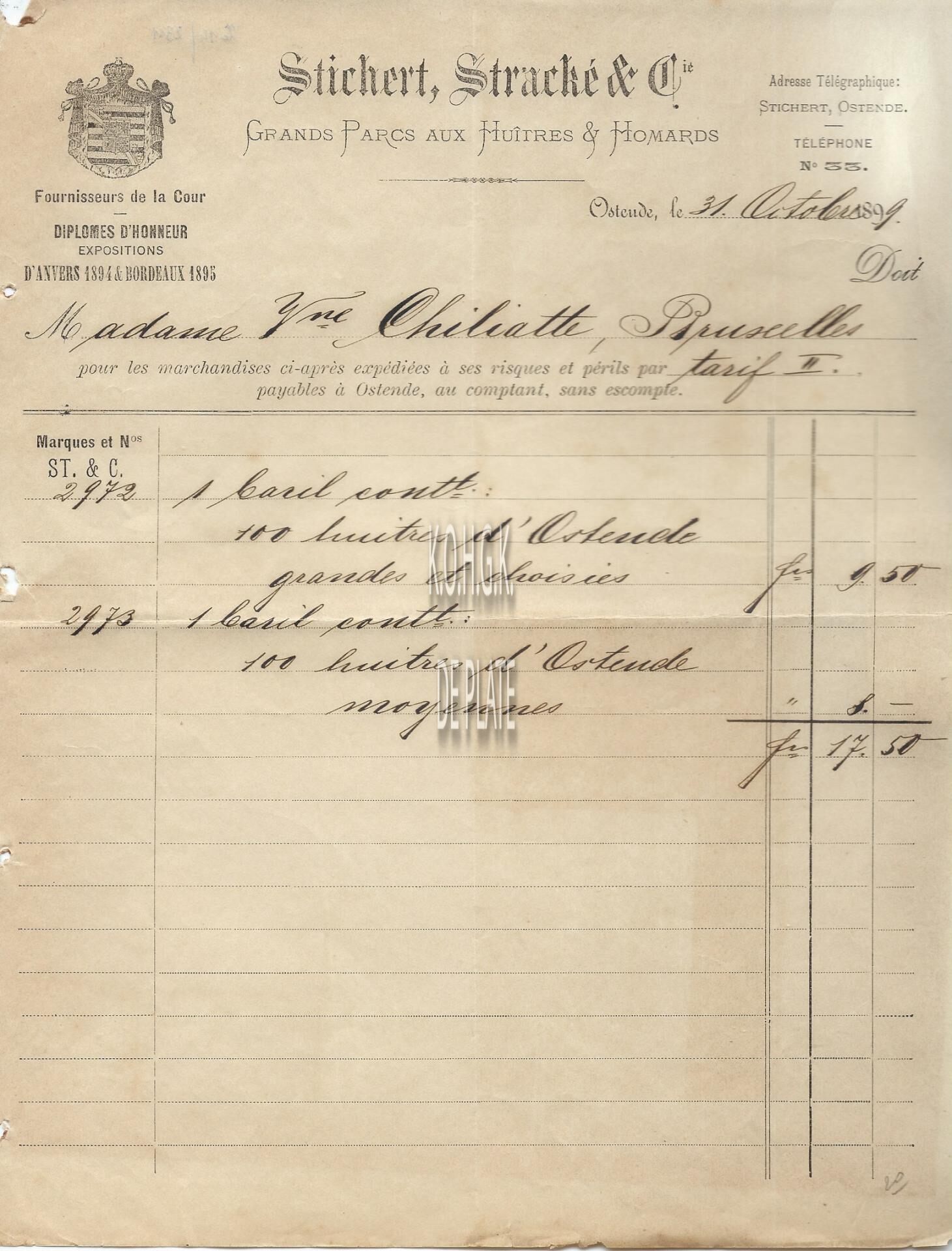 Omschrijving Hofleveranciers.- Leveren van 2 vaatjes "Oostendse oesters" Trefwoorden HANDEL ; LEVERINGSBONNEN STICHERT - STRACKÉ EN CO (OESTERPARK) HANDEL ; SCHAAL- EN SCHELPDIEREN HOFLEVERANCIERS OOSTENDSE OESTERS Plaatskenmerk ARCHIEF 110 ARCHIEFDOOS HANDEL Inventarisnummers 2014/2311 31/ 10/ 1899 Print