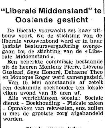 Trefwoorden LIBERALE MIDDENSTAND OOSTENDE (BEROEPSVERENIGING) VERENIGINGEN ; BEROEPS Plaatskenmerk O.D.P.-archieven. Bibliotheek Kris Lambert KBOD1946 10-05-1946 Bron De Kustbode Pagina's 2 Print
