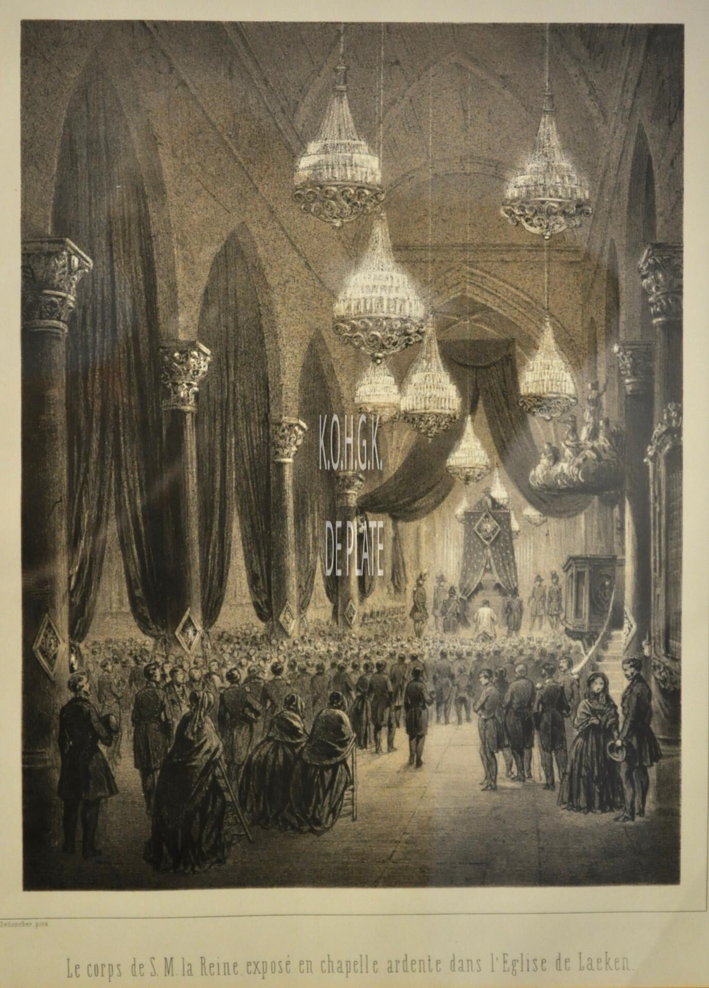 Trefwoorden LITHOGRAFIEEN LOUISE-MARIE VAN ORLEANS (KONINGIN DER BELGEN) (1812-1850) ONZE-LIEVE-VROUWKERK VAN LAKEN BEGRAFENISSEN Plaatskenmerk ARCHIEF 202 SCHILDERIJEN E2 Inventarisnummers 1999/0048 Herkomst NUYTTEN JAN Materiaal soort Lithografie Vervaardiger De Donker V. Kenmerken Rechtsboven : nr. 5 Linksonder : V. De Donker Pinx Midden : Le corps de sa majesté la reine exposé en chapelle ardente dans l’église de Laeken Collectie Schilderijen Etsen Litho's Tekeningen Gravures Houtsnedes Print