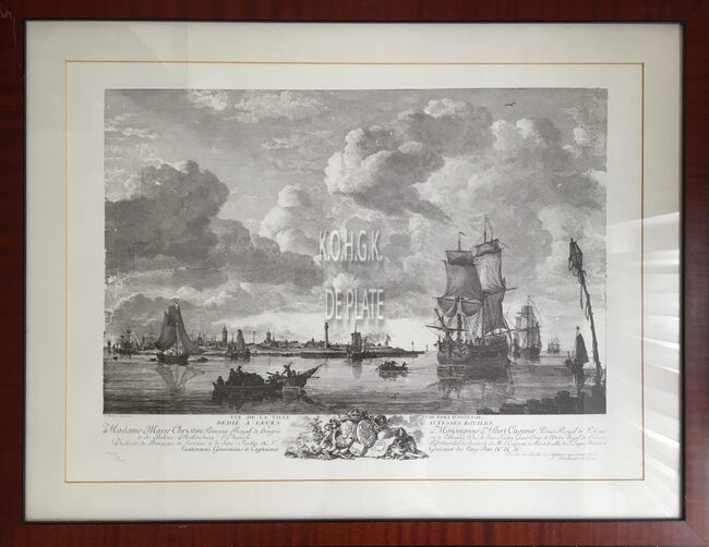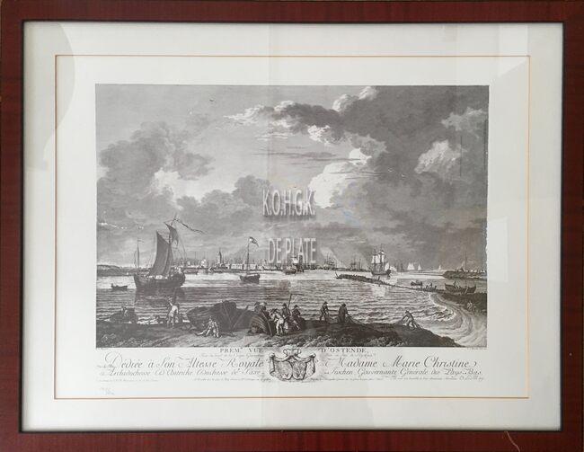Gravure : Vue de la ville et du port d'Ostende
