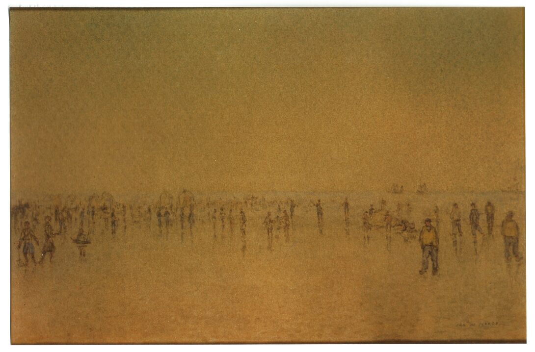 Na regen lage tij / Jan De Clerck. - Gemengde techniek op papier, 34 x 48 cm. - Bezit : Privé verzameling