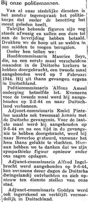 Trefwoorden POLITIE ; PERSONEEL TWEEDE WERELDOORLOG Plaatskenmerk O.D.P.-archieven. Bibliotheek Kris Lambert KBLA1944 08-10-1944 Bron Het Kustblad Pagina's 2 Print