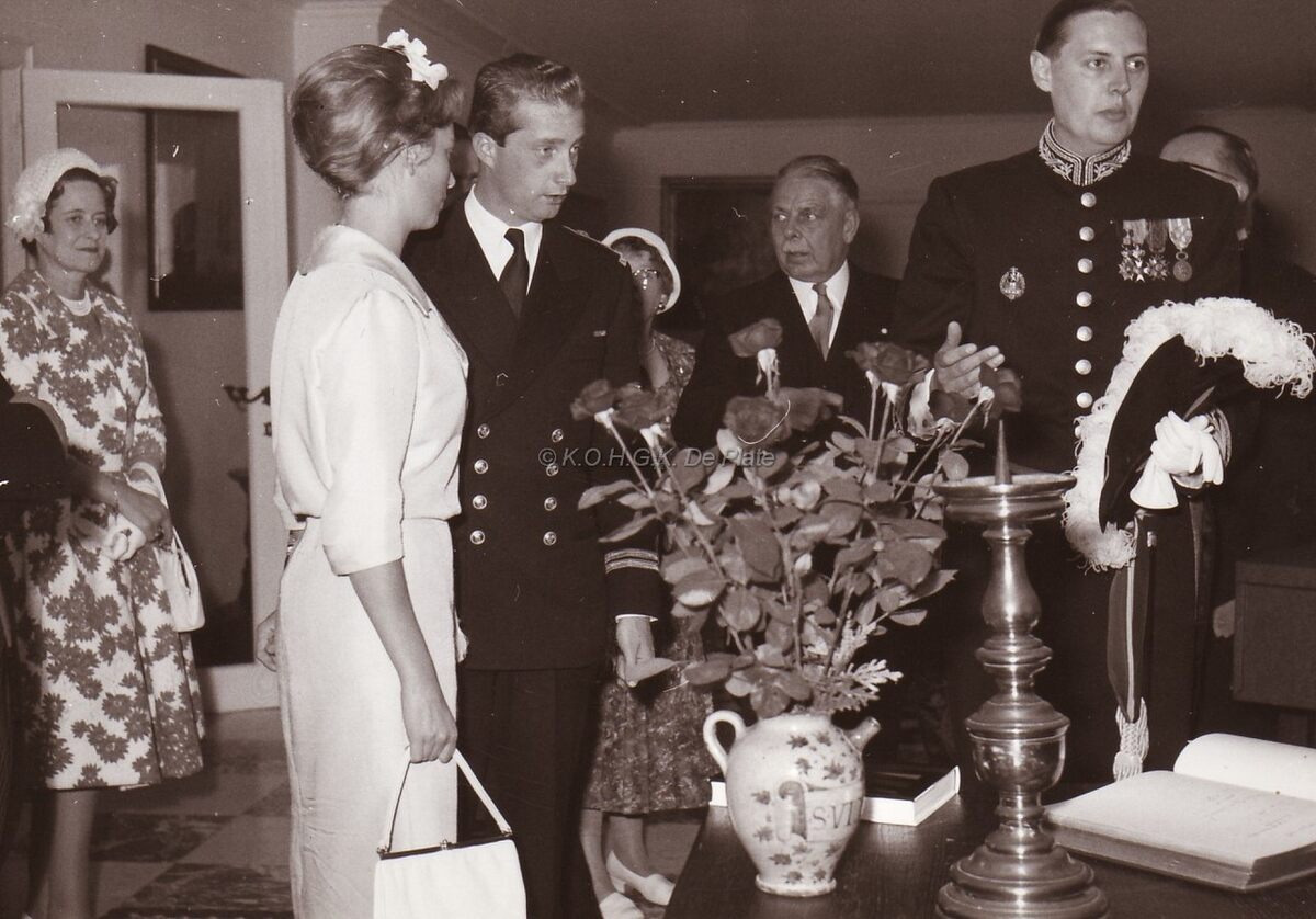 Formaat : 13 x 18 cm. - Het prinsenpaar Albert en Paola in gezelschap van o.a. Jan Piers, burgemeester en René Lefebvre, minister van binnelandse zaken, in de Koninklijke Villa
