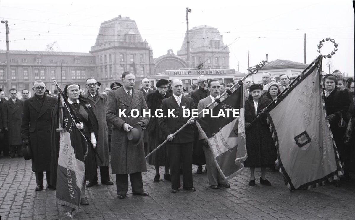 Negatief : 6 x 9 cm. - Plechtigheid aan het oorlogsmonument voor de gesneuvelden op het Sint Petrus en Paulusplein.