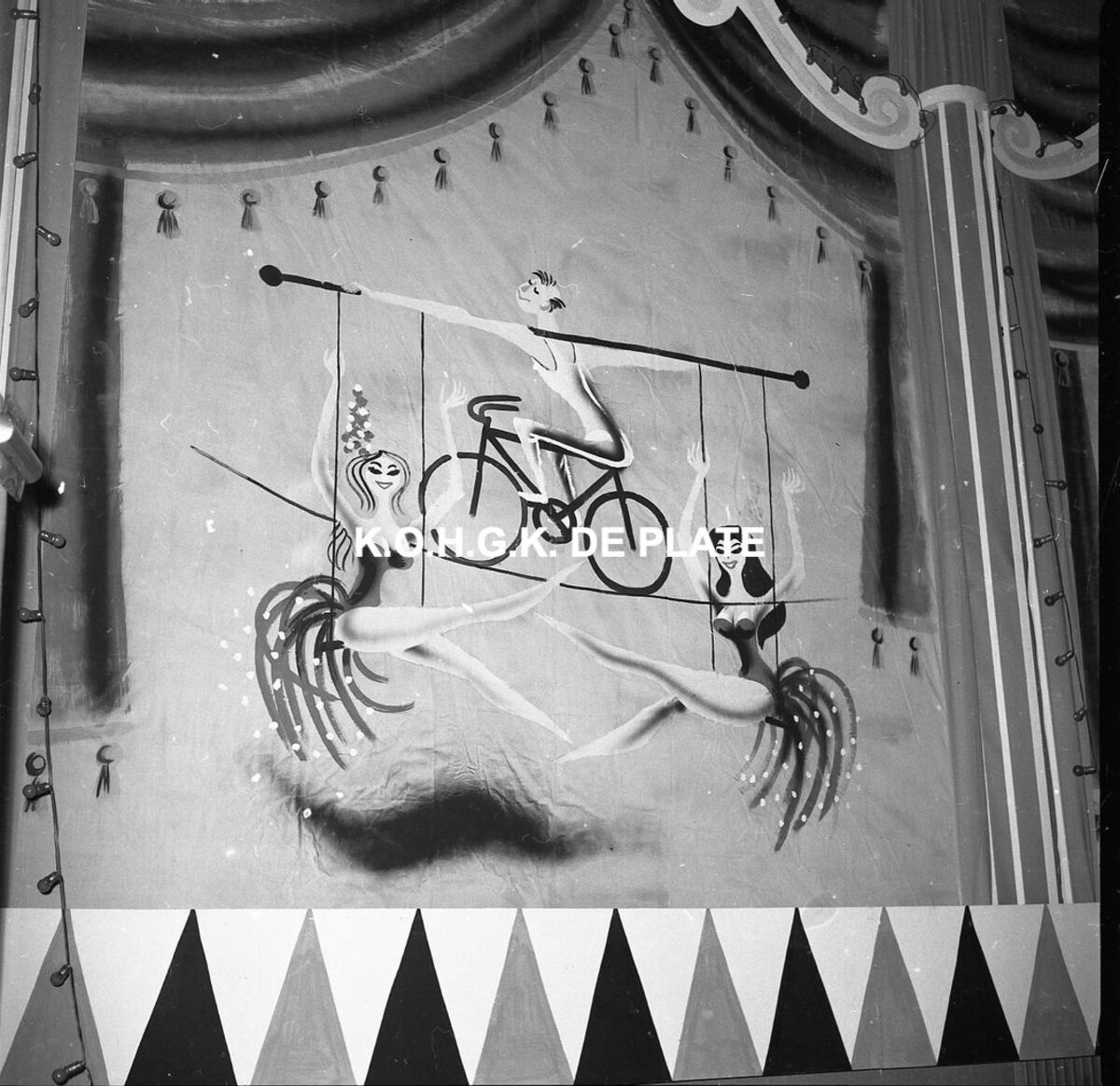Negatief : 6 x 5,5 cm. - Thema : "Het Grote Circus" = "Les Gens du Voyage". De decors waren een ontwerp van Willy Bosschem en Raymond Pyson