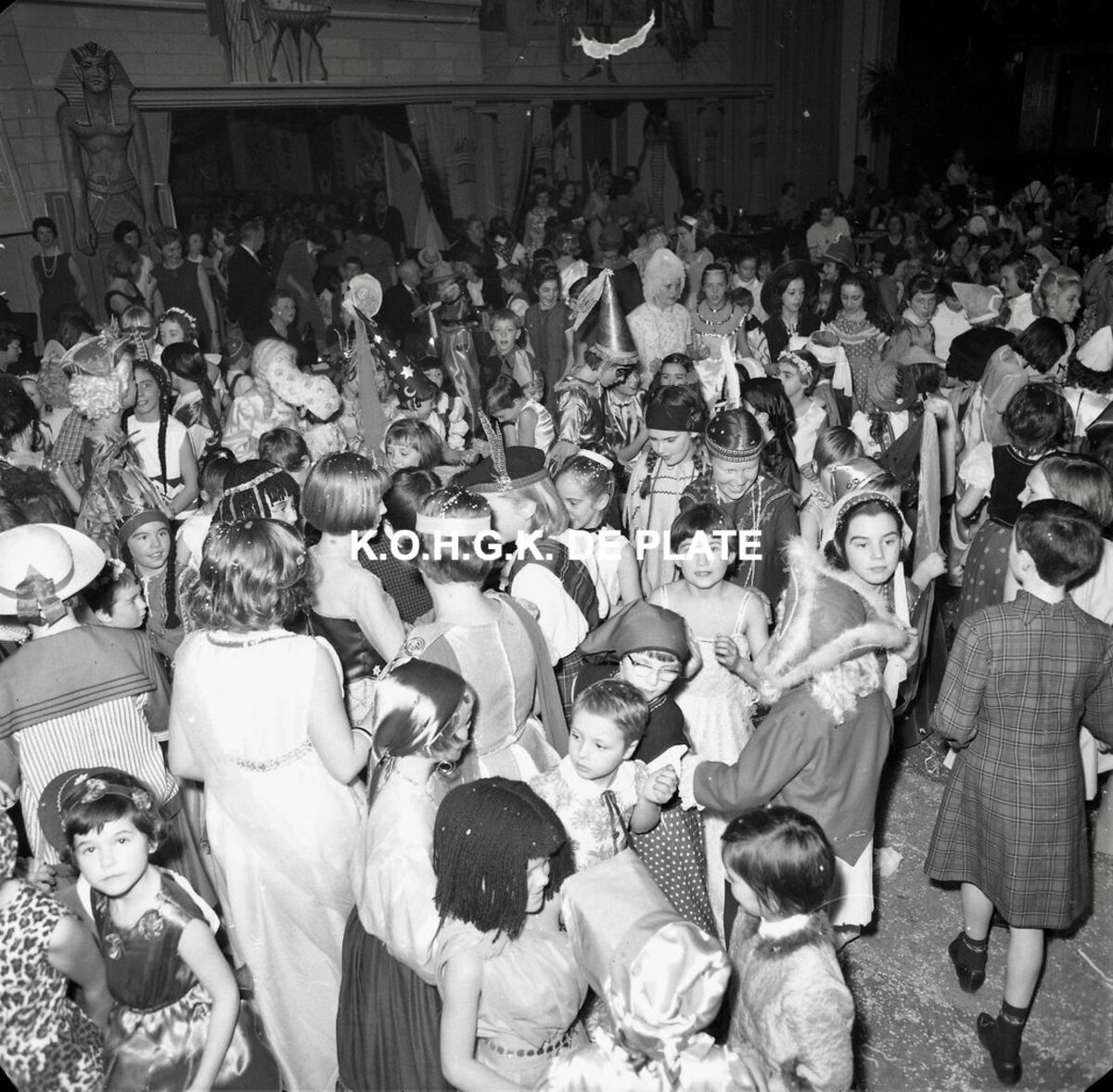 Formaat : 10 x 10 cm. - De erehall. In de decors van het Bal du Rat Mort "Cleopatra in Roma"
