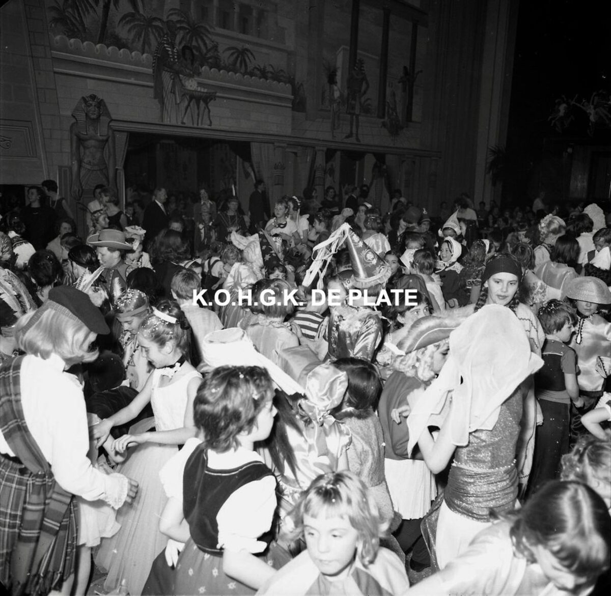 Formaat : 10 x 10 cm- De erehall. In de decors van het Bal du Rat Mort "Cleopatra in Roma"..