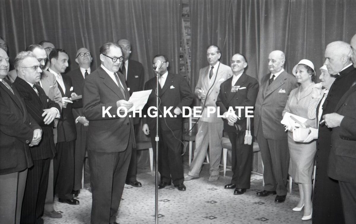 Foto : Viering 175 jaar Firma VALCKE. Kapellestraat 76. De receptie. 14/06/1958