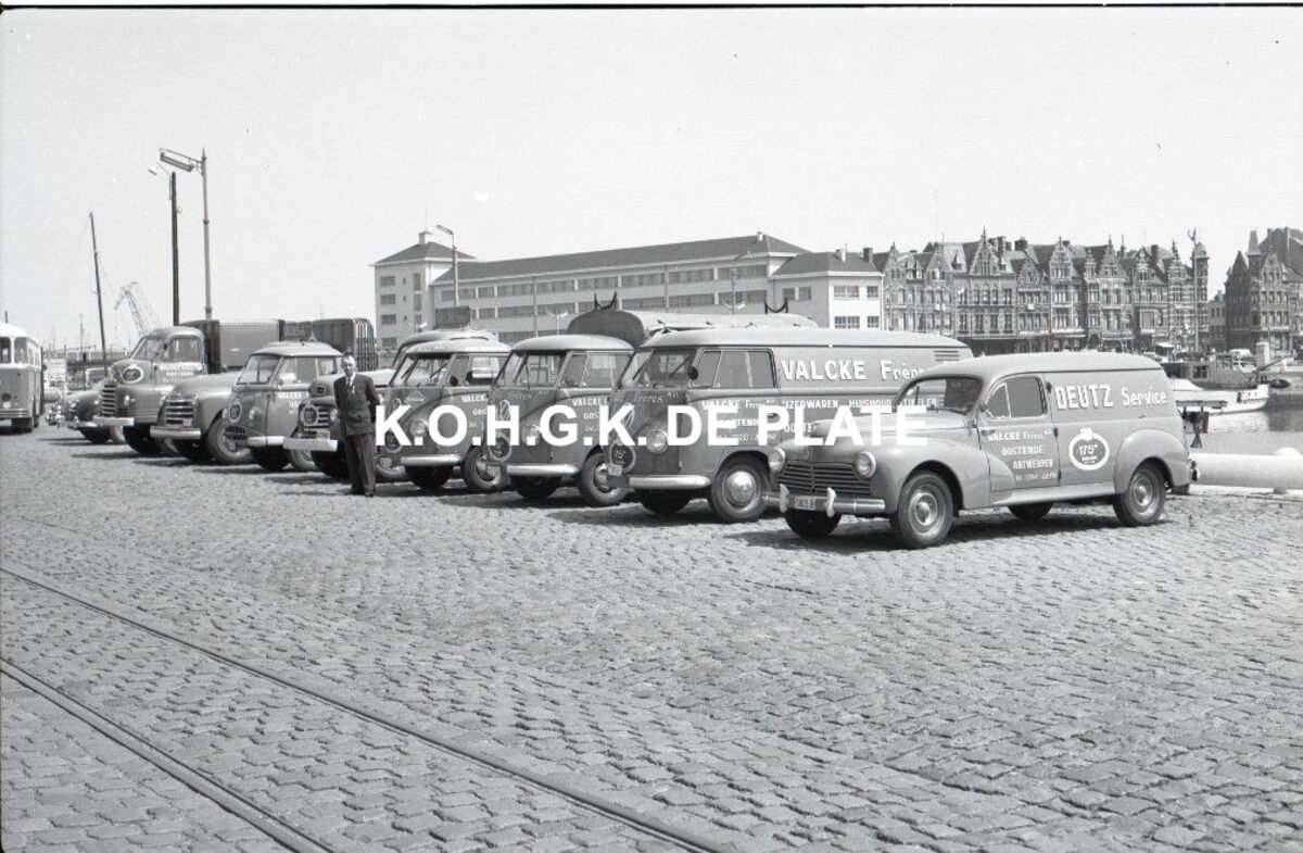 Negatief : 6 x 9 cm. - De bedrijfwagens opgesteld langs de Vindictivelaan