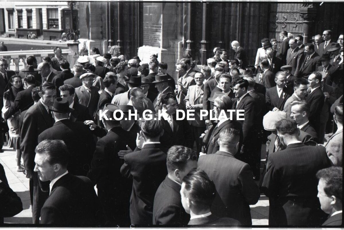Negatief : 6 x 9 cm. - 's Morgens was er in de Sint Petrus en Pauluskerk een eucharistieviering voor de overleden familie- en personeelsleden. Na de plechtigheid.