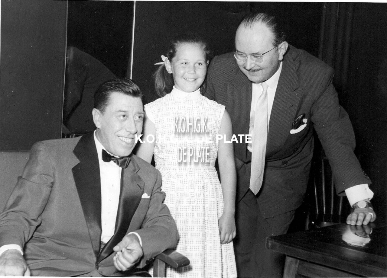 Formaat : 13 x 18 cm. - Fernandel in het gezelschap van Roger De Ramée, directeur van het Kursaal en dochter.