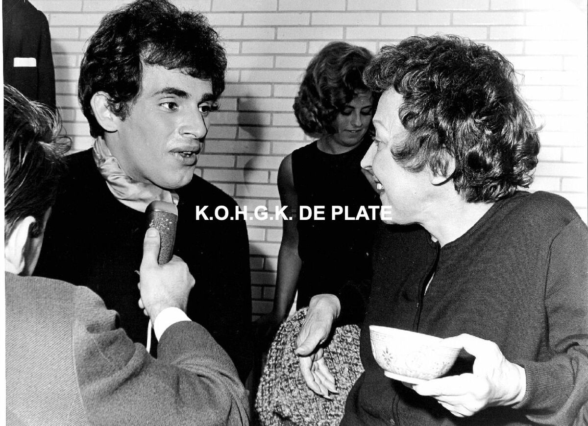 Formaat : 17 x 23 cm. - Edith Piaf en Théo Sarapo in een interview met Jean-Claude Mennessier voor de Frantalige radio-omroep.