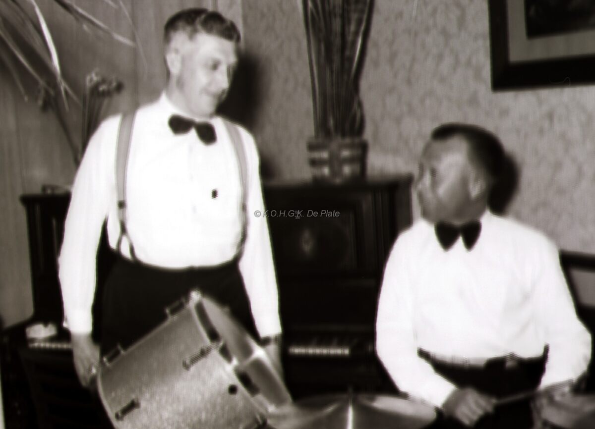 Een paar muzikanten die het banket van schuttersvereniging "Les Carabiniers" opluisterden.