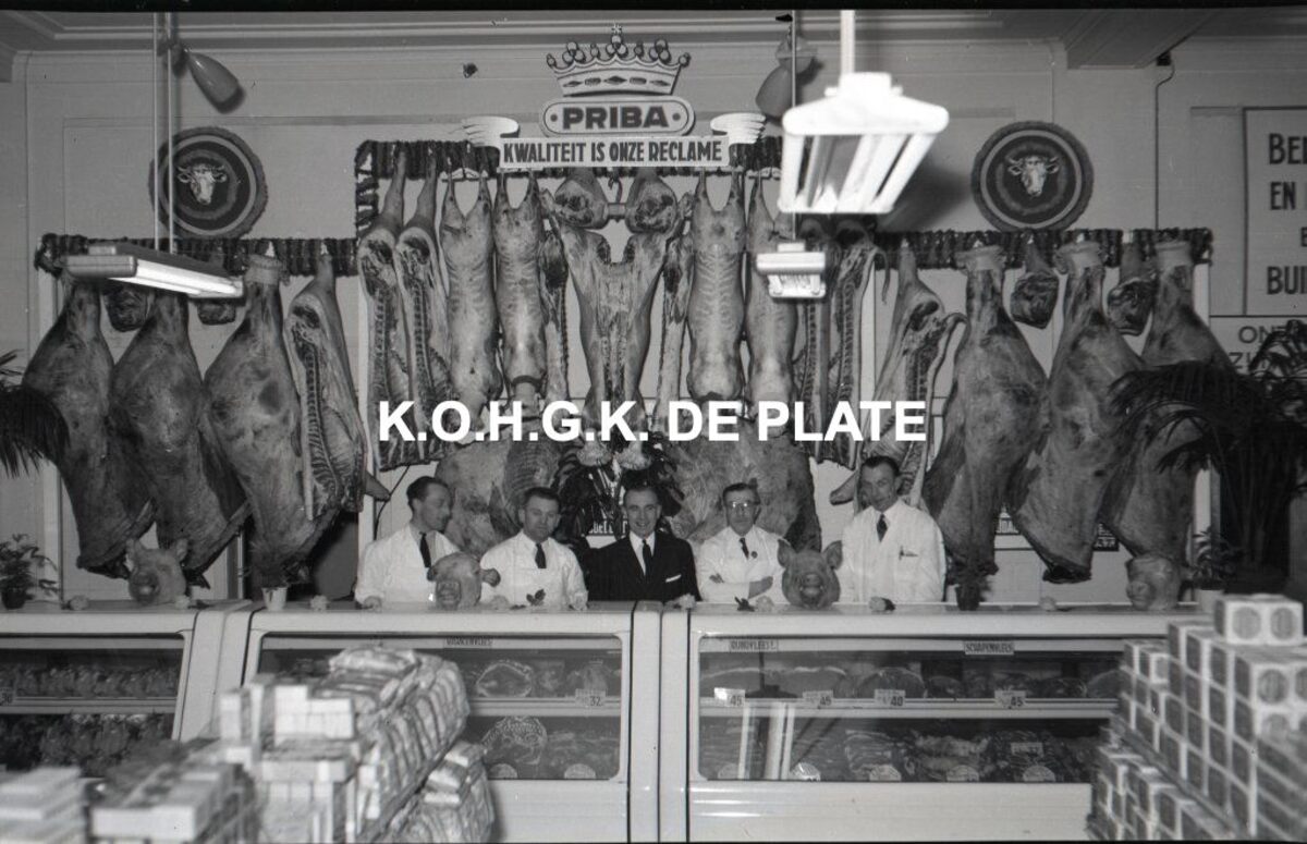 Negatief : 6 x 9 cm. - De toonbank van de slagerijafdeling tijdens de paastijd.