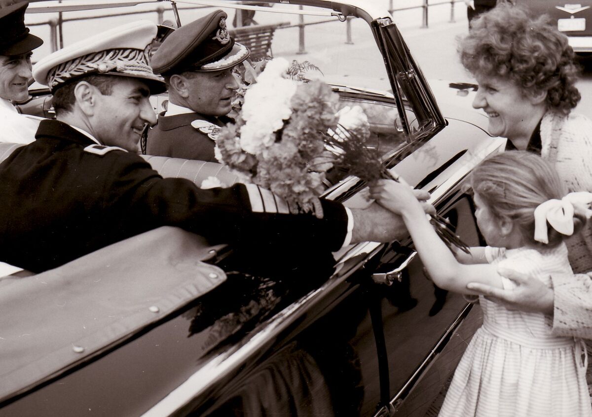 Mohammad Reza Pahlavi, sjah van Iran op bezoek te Oostende.